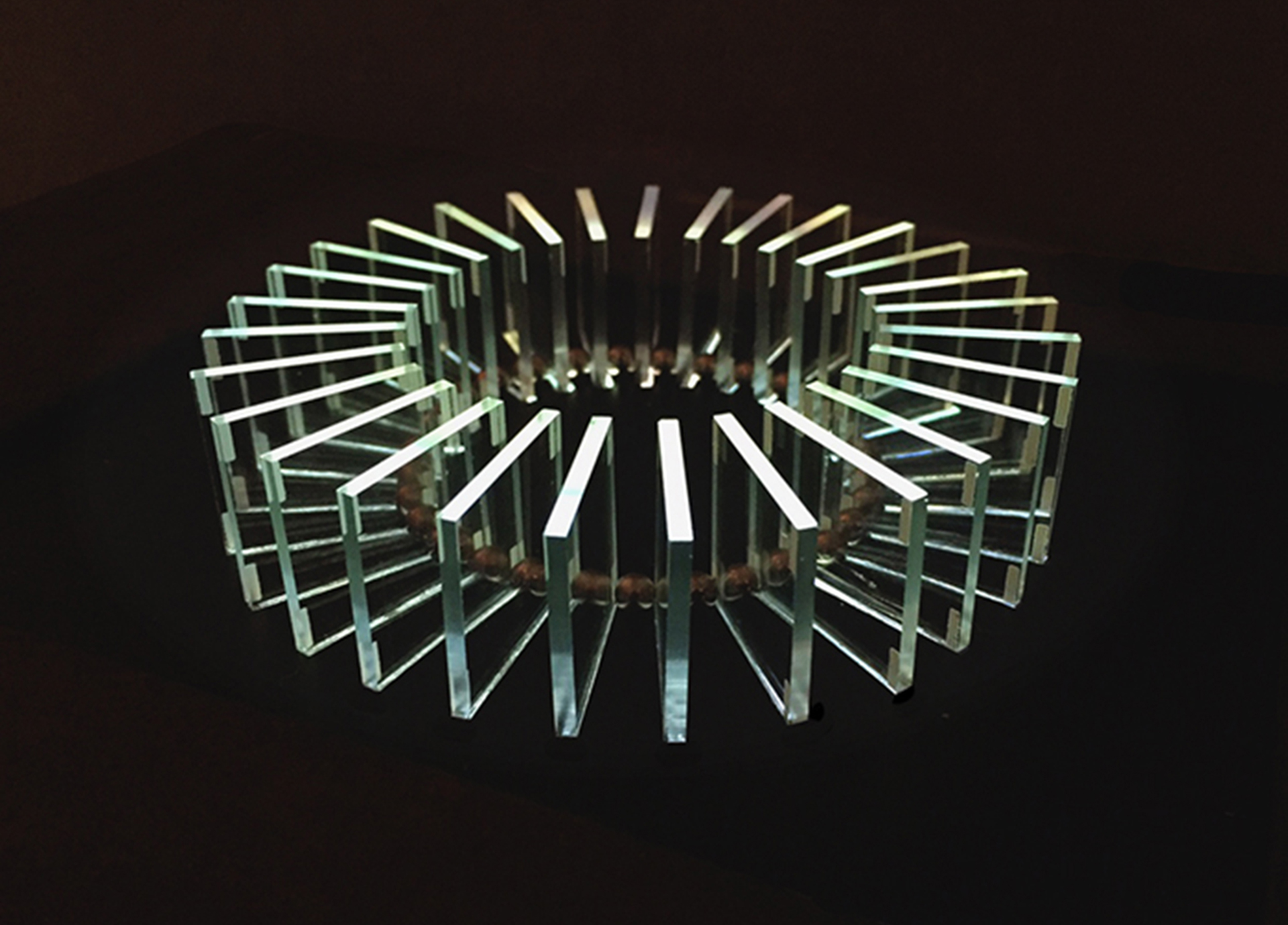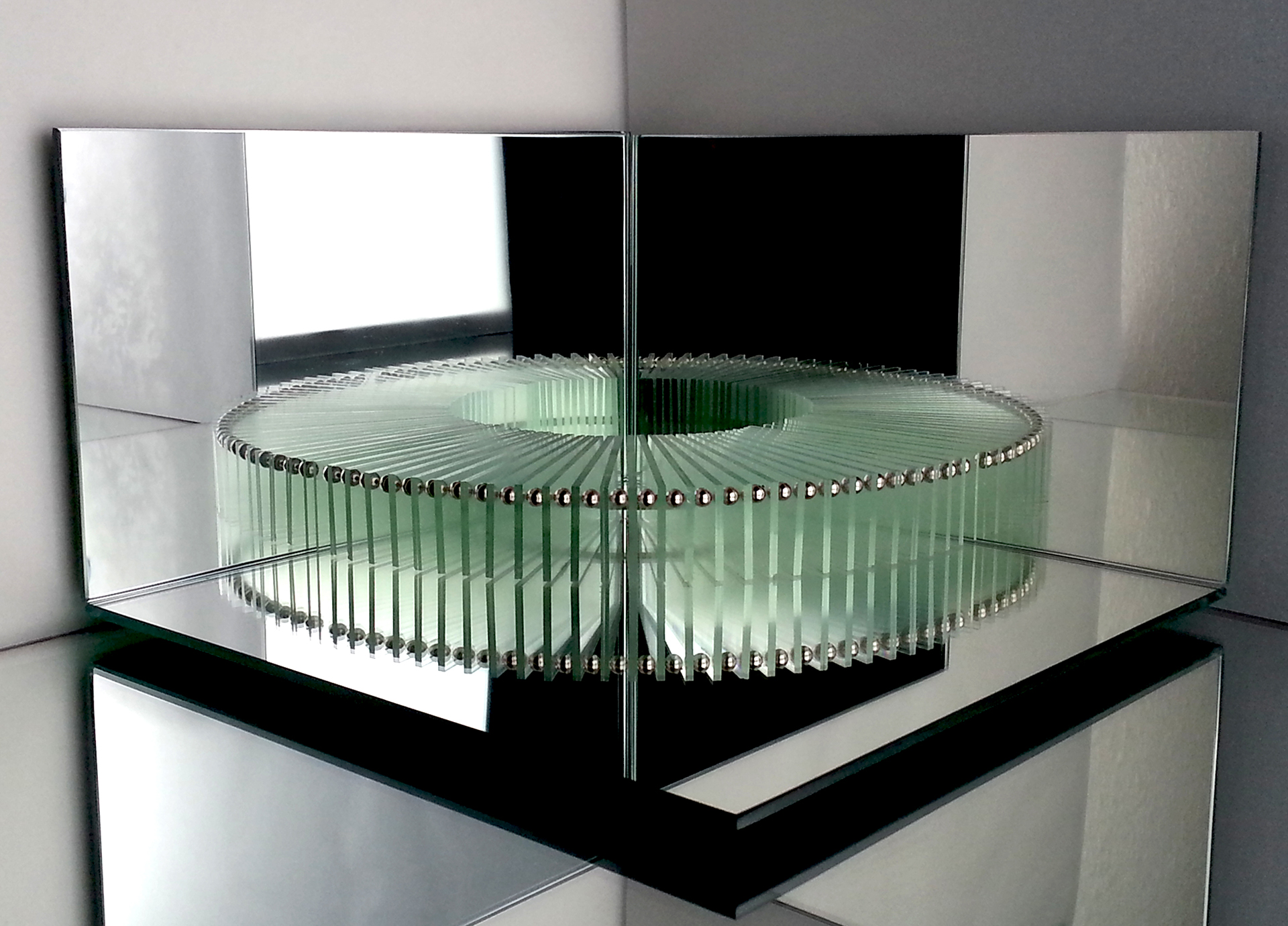 This wall-mounted piece focuses specifically on symmetry in physics, in which a physical property or process has an equivalence in two or more directions. Here, that includes viewers’ true reflections, as others see them.